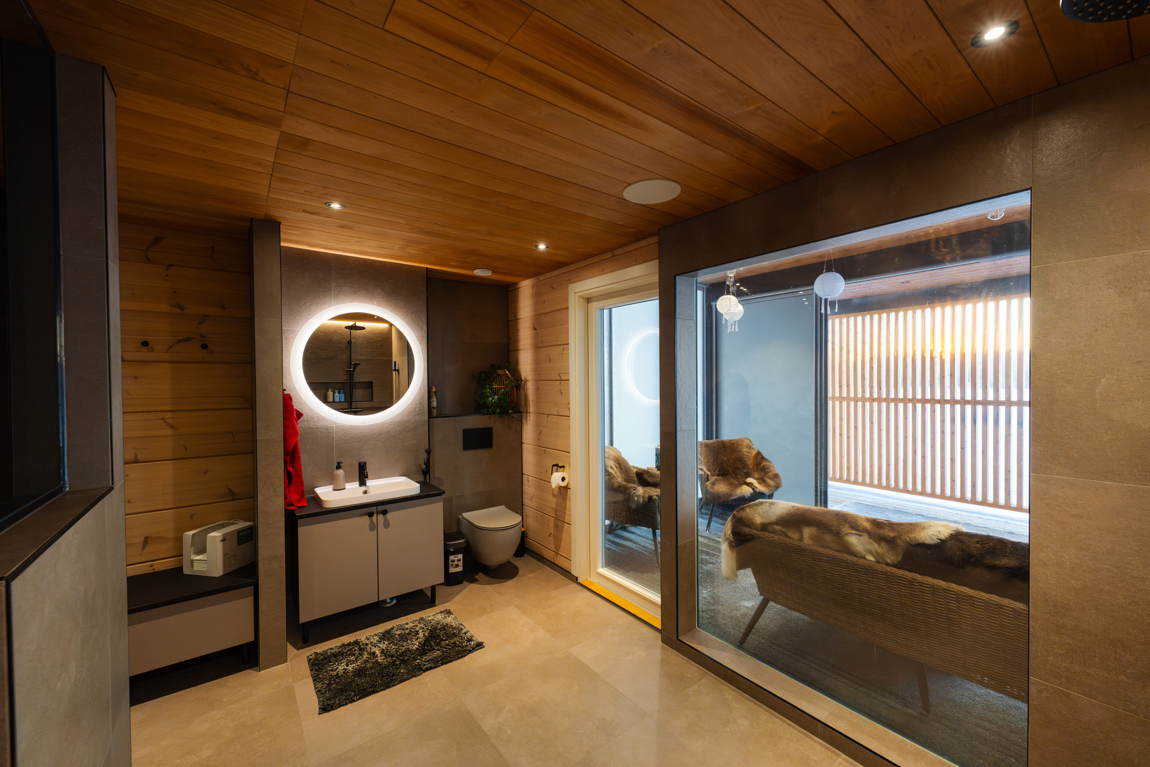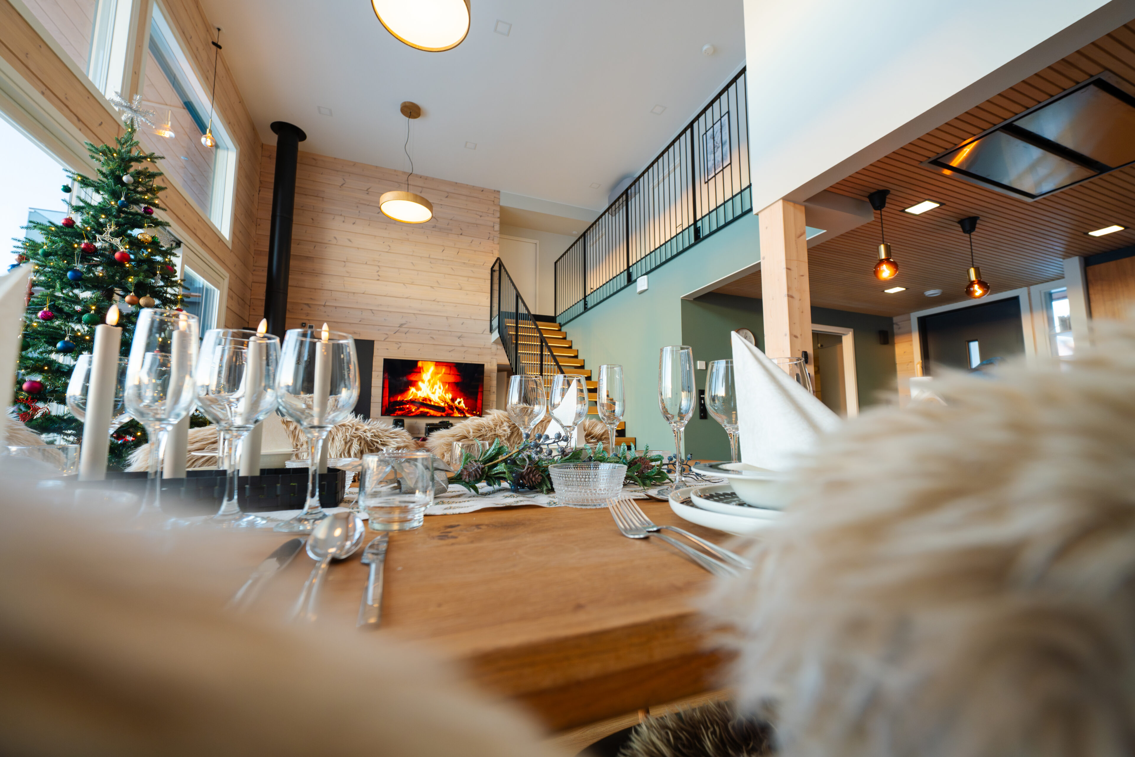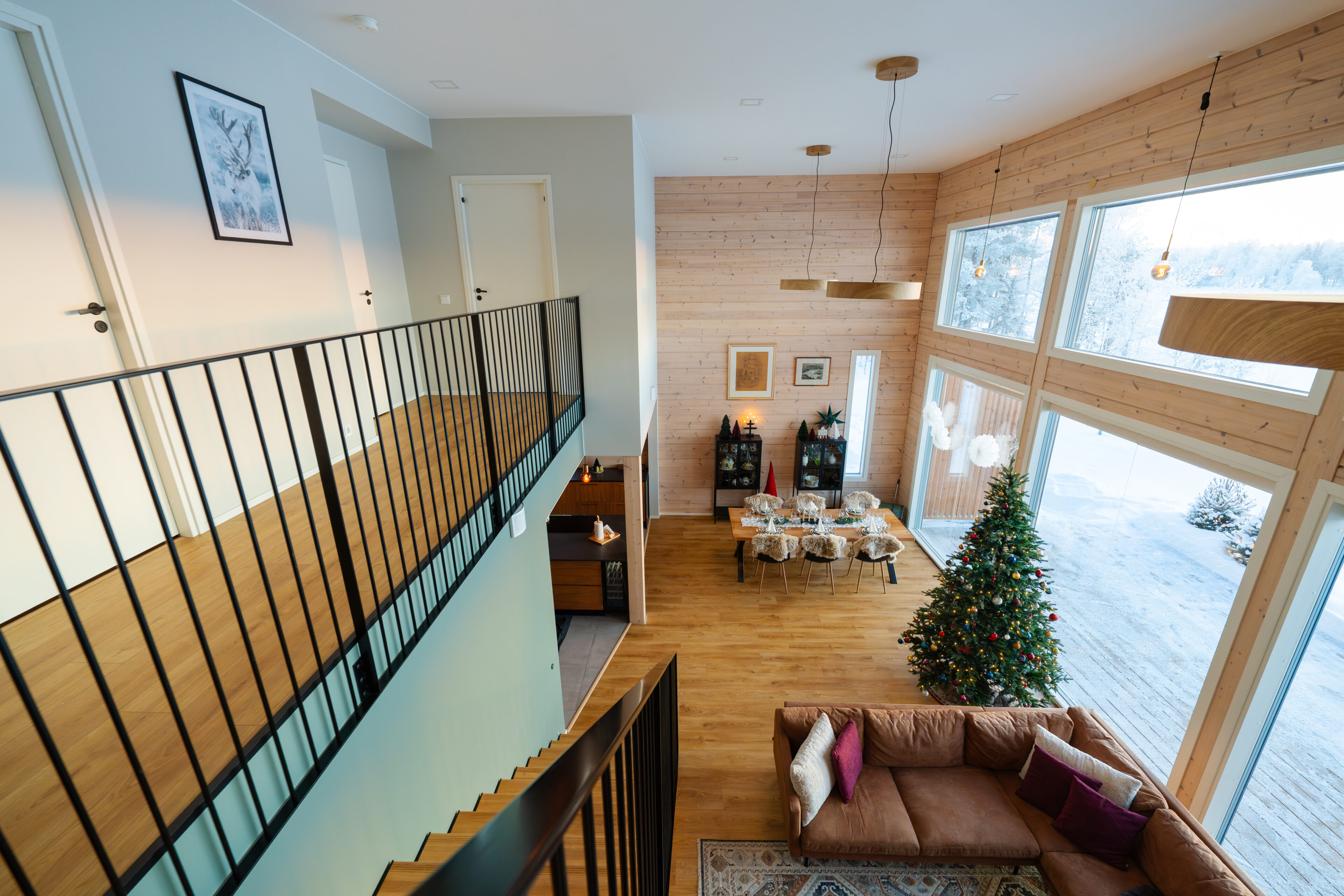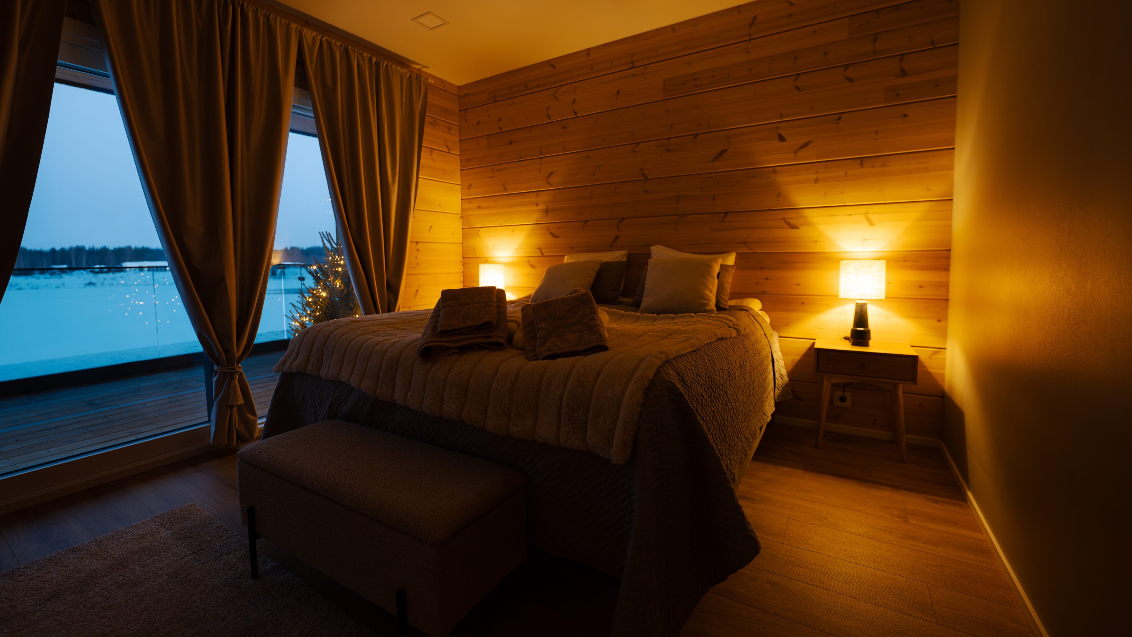 Stunning Indoor Environments: The villa’s interior blends modern luxury with rustic charm, creating a warm and inviting atmosphere. Large windows offer panoramic views of the Kemijoki river and surrounding nature, enhancing your connection to the beautiful landscape.