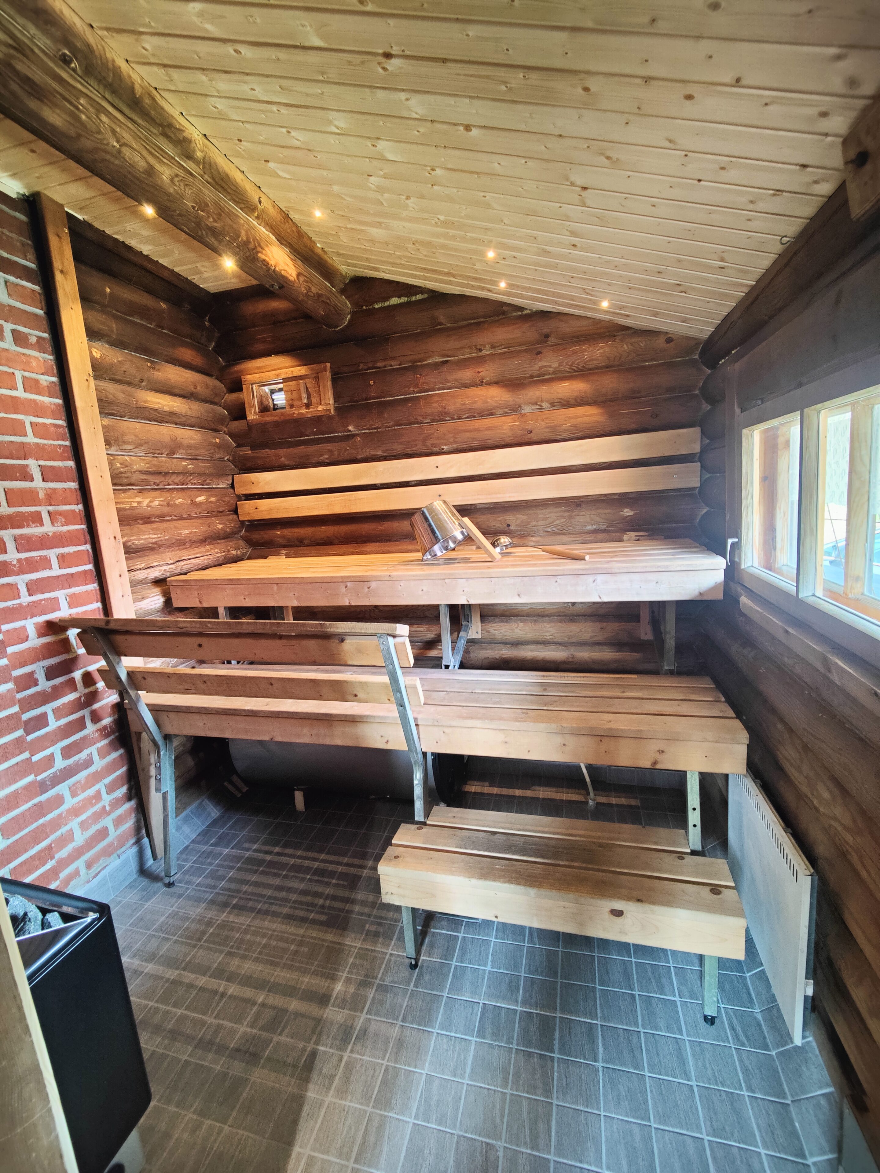 The villa has two single beds, a sauna and a fireplace.